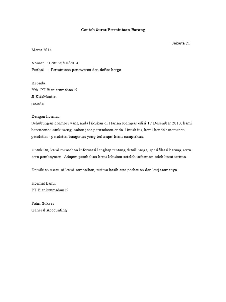 Contoh Surat Permintaan Barang Pdf