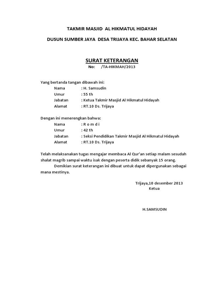 Contoh Surat Takmir Masjid Pdf